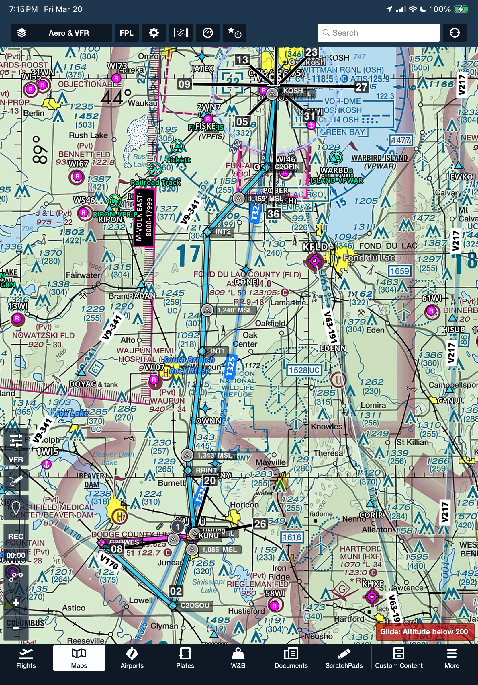 From takeoff at UNU to touchdown on Runway 36 at KOSH: